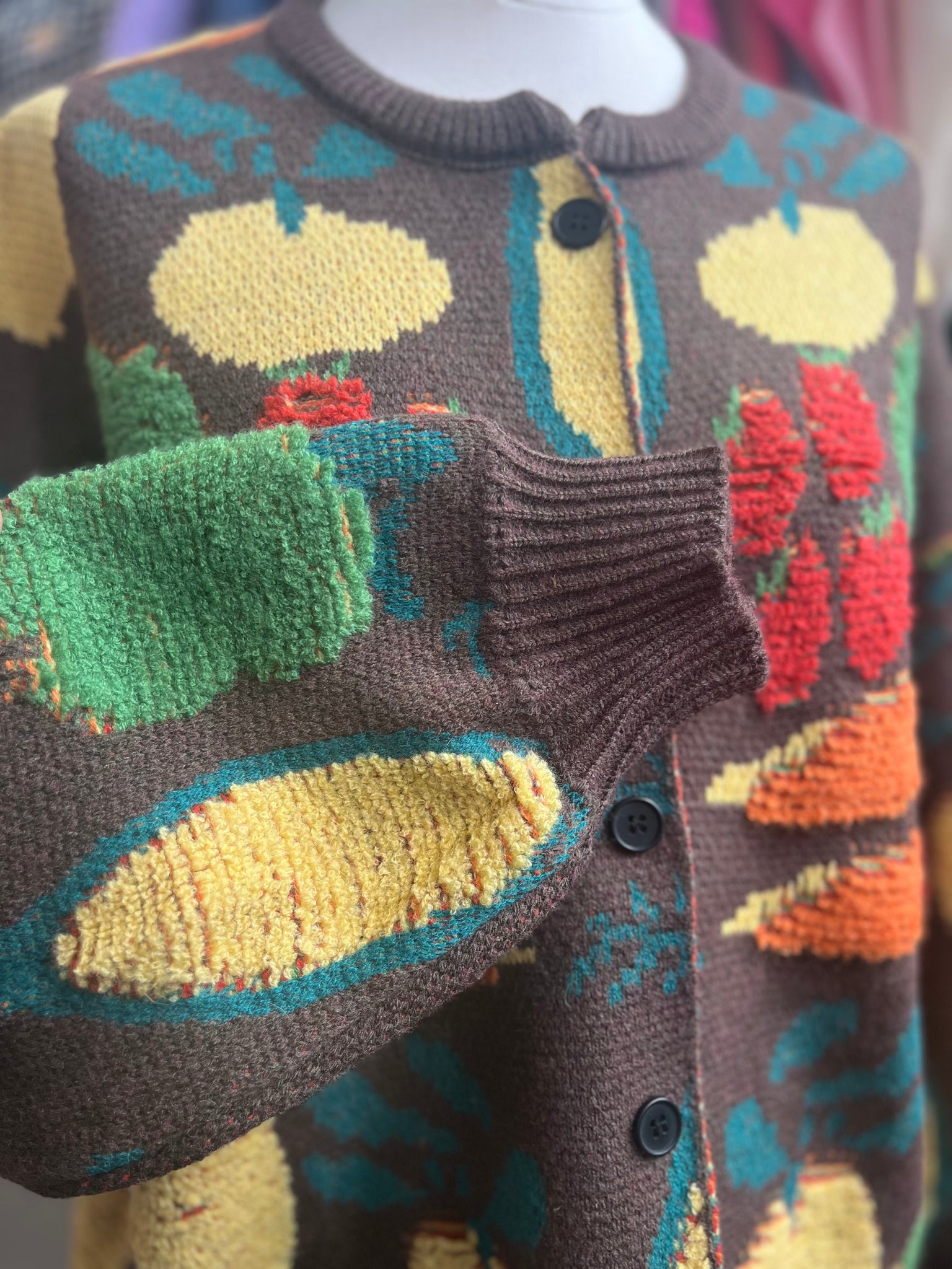 Quirky fruit and Veg design cardigan/jacket. Oversized and boxy shape so works on a different shapes and sizes